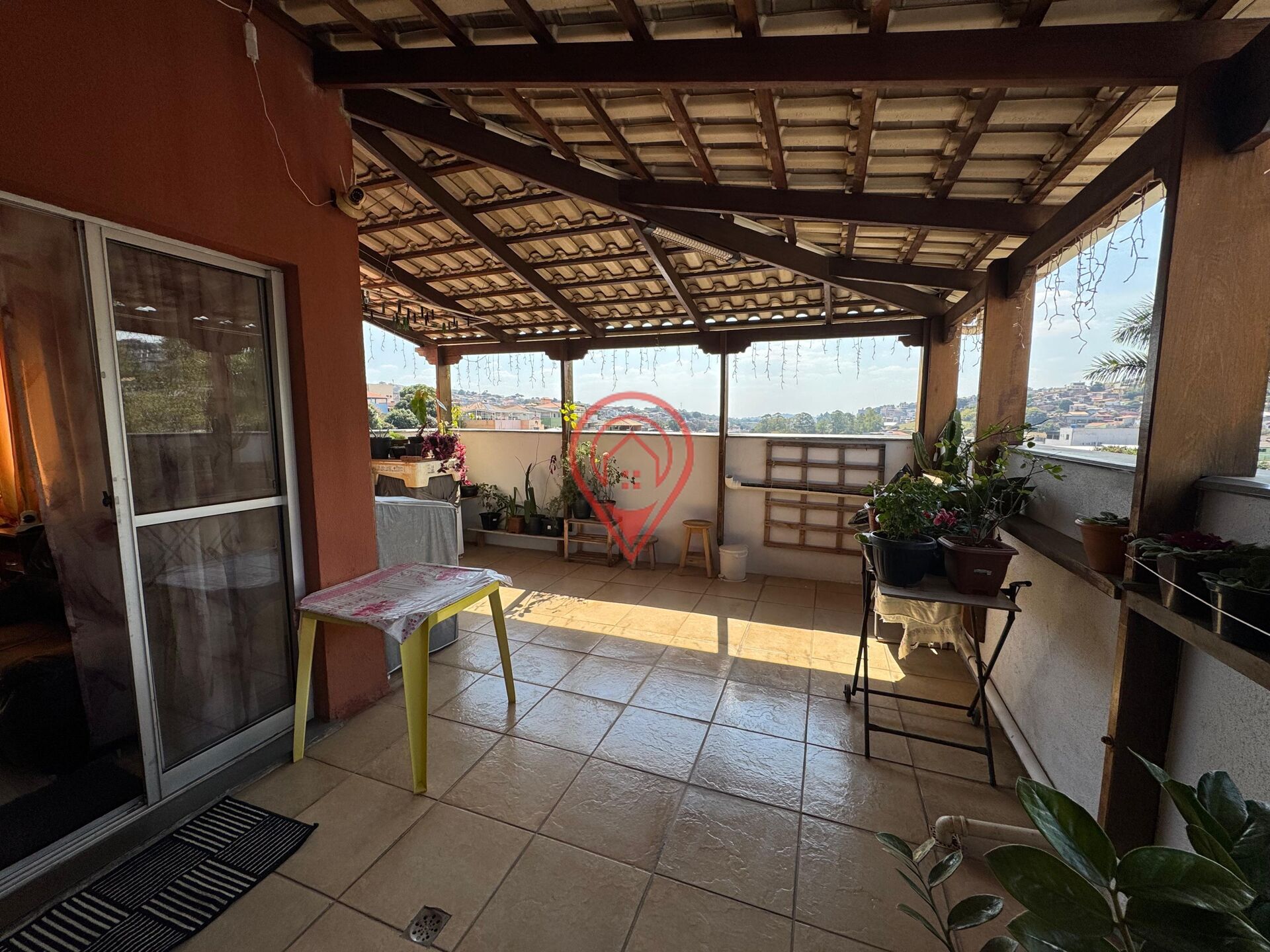 Cobertura com uma sala, banho social, varanda com telhado estilo colonial