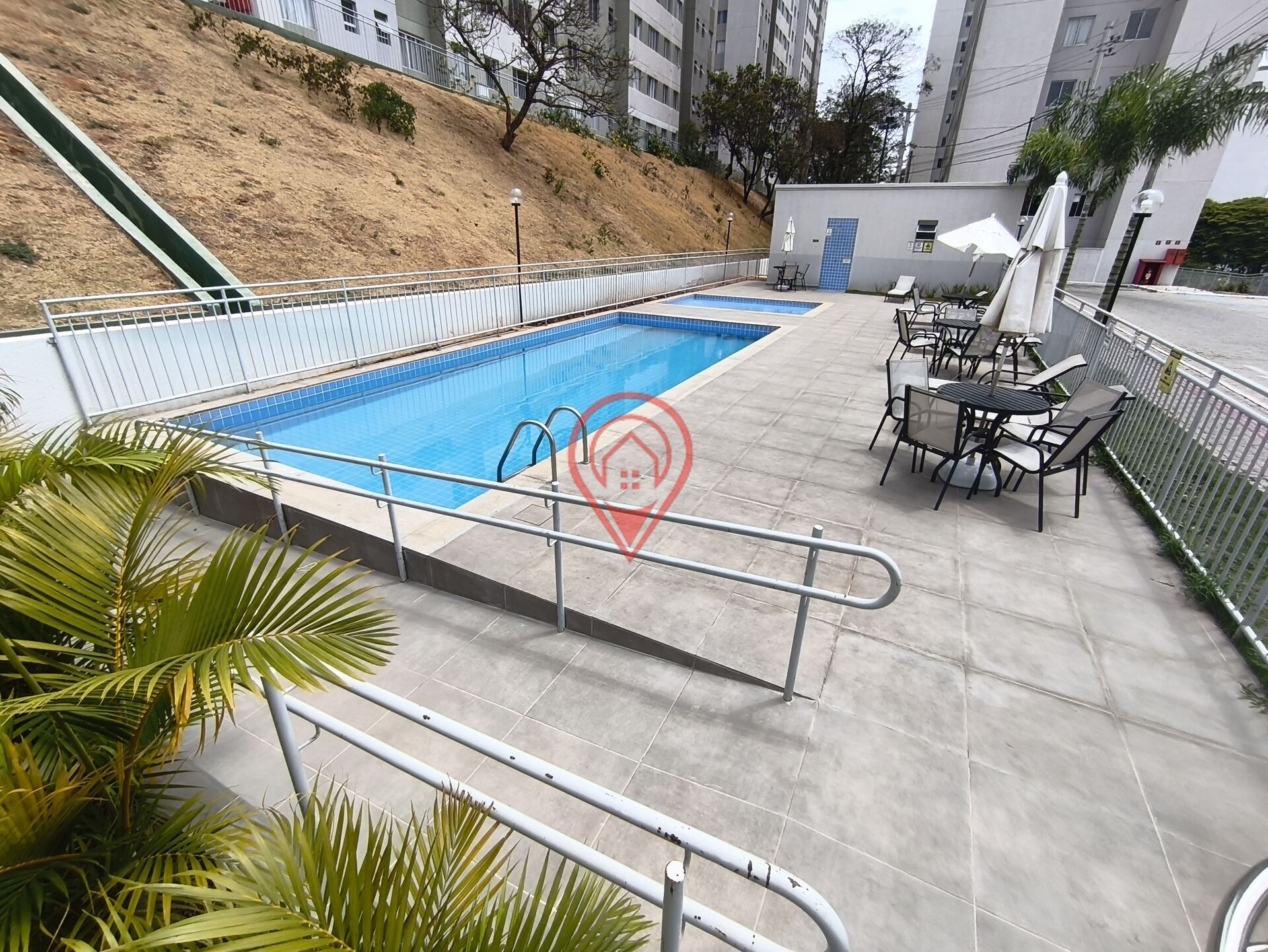 O condomínio possui área gourmet com churrasqueira, playground, piscina, área verde, quadra de esportes.